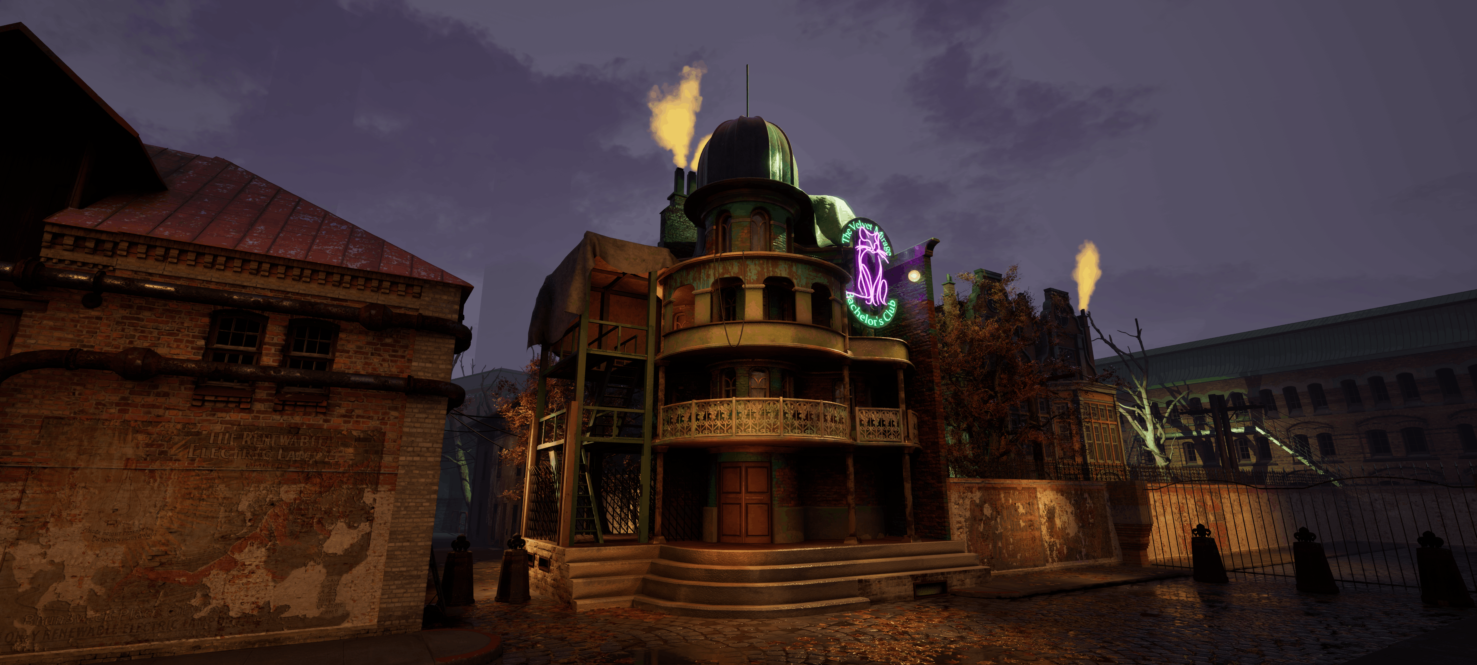 The Industrial District is an environment concept that borrows its visual style from Sci-Fi and dystopian popular media. Jacobean and colonial architecture clash with parasitic, rusting, looming machinery in the new anti-human apartheid of industrial Boston.